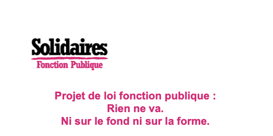 Solidaires n’est en aucun cas demandeur de ce projet de loi. Les urgences pour les agent·es publics ne sont pas celles que le ministre affiche et qui s’avèrent destructrices pour la fonction publique, tout comme pour les services publics et constituent des attaques contre les droits des agent·es publics.