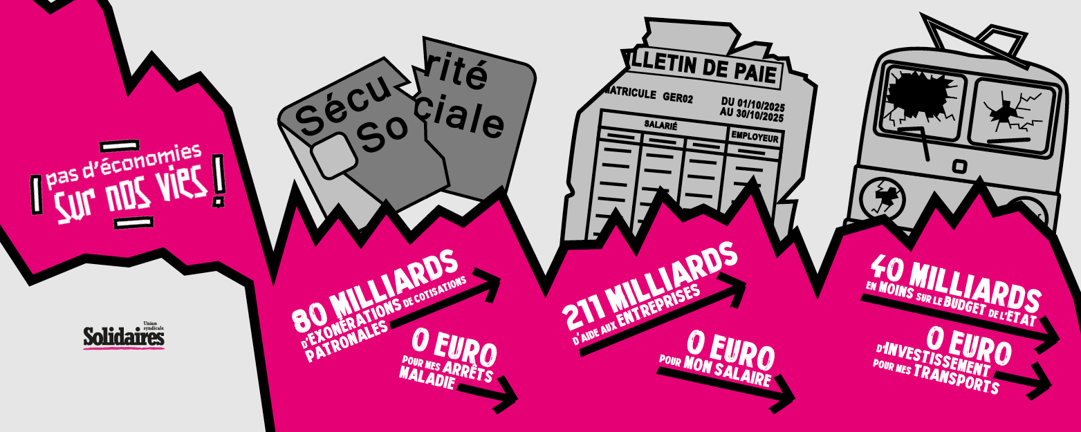 Dans ce contexte, Solidaires lance la campagne “Pas d’économies sur nos vies”. Stoppons ce projet de budget injuste et brutal et imposons nos alternatives !