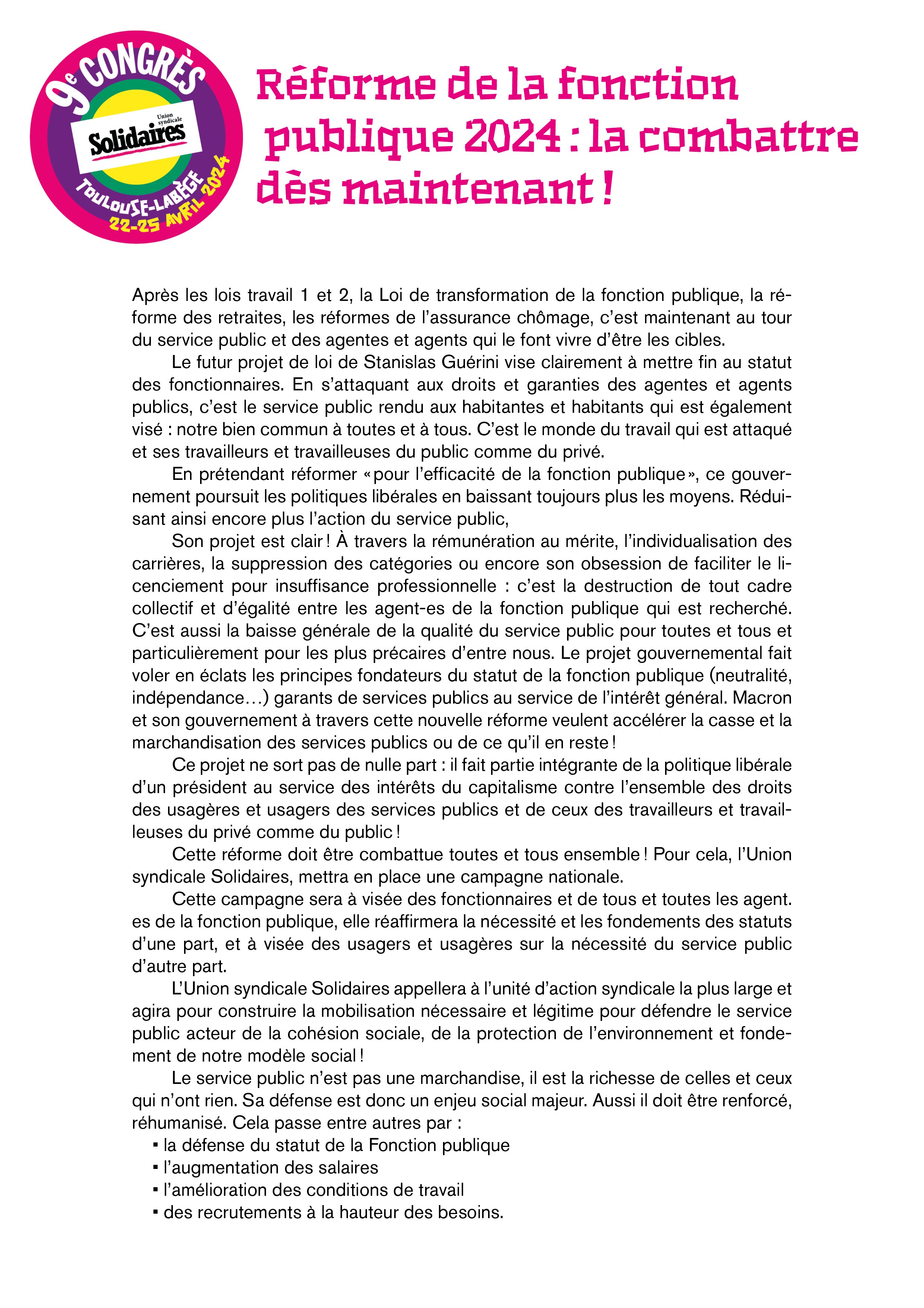 Cette réforme doit être combattue toutes et tous ensemble ! Pour cela, l’Union syndicale Solidaires, mettra en place une campagne nationale.