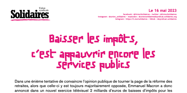 Baisser les impôts, c’est bien dégrader encore la situation des services publics.