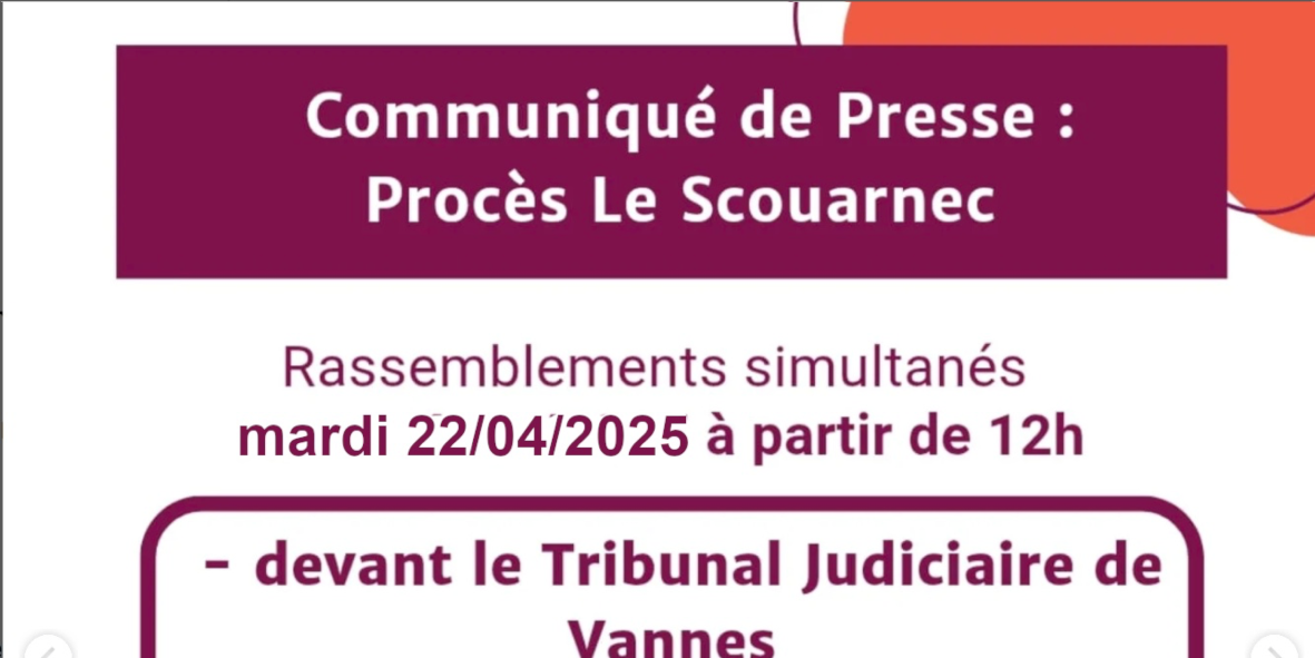 - Communiqué de presse commun inter-organisations pour un appel à rassemblement le 24/02/2025 : https://syndicat-smg.fr/proces-le-scouarnec-rassemblements-24-fevrier-paris-et-vannes