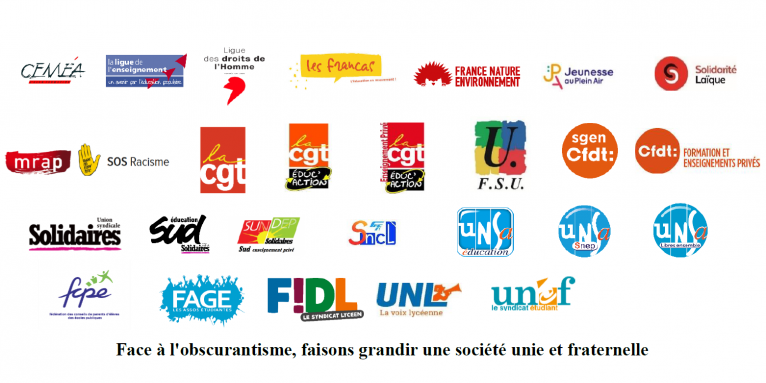 Parce que c’est le devenir même de la République, de son École publique et laïque et de notre Nation qui est en jeu et, avec elles, une part de celui du monde, nous appelons toute la population à construire cette réponse avec nous.