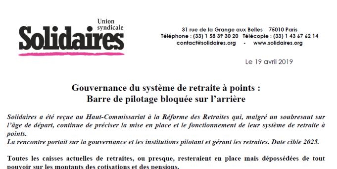 Communiqué et compte rendu sur la réforme des retraites sur la gouvernance