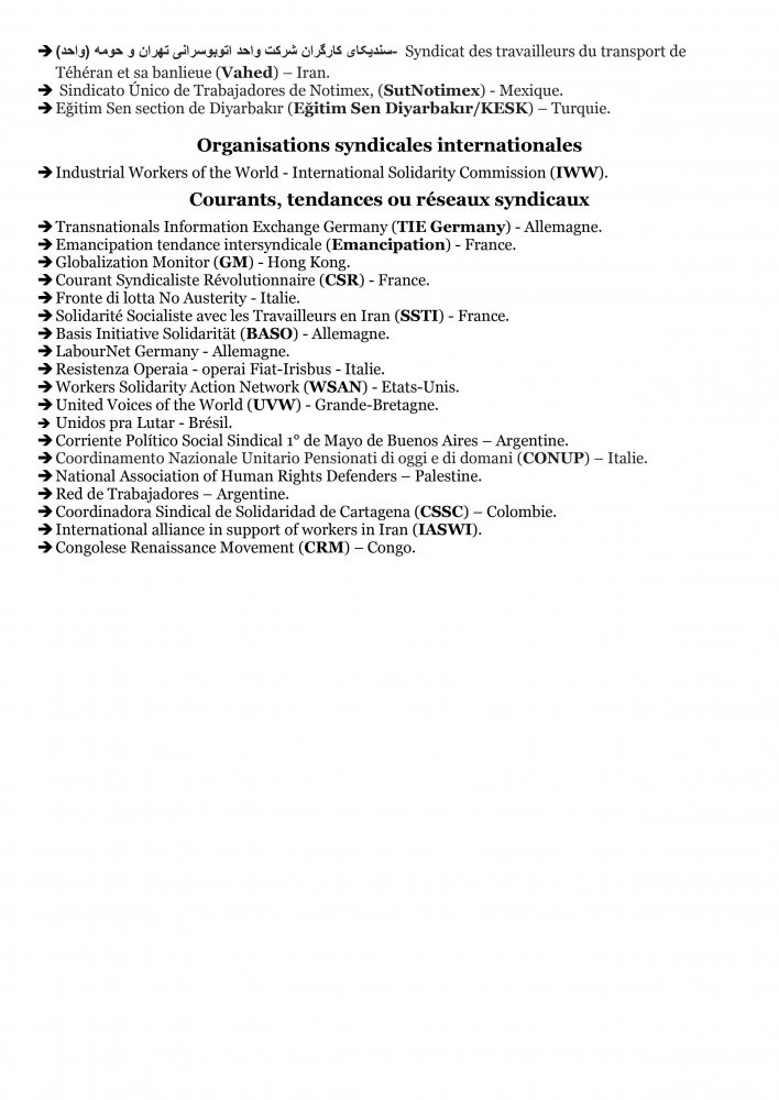 Les organisations membres du Réseau syndical international de solidarité et de lutte