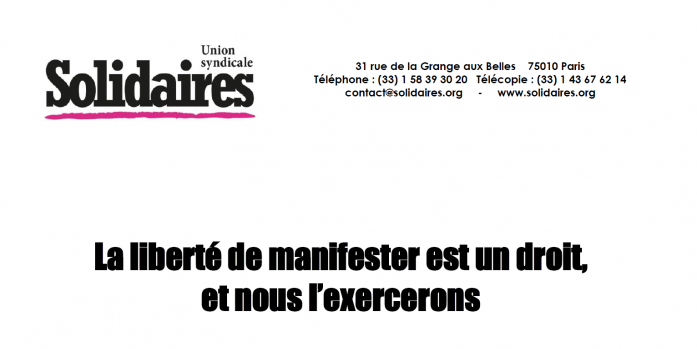 Au vu de la décision du Conseil d’Etat, l’Union syndicale Solidaires exige que soient abandonnées toutes les poursuites et amendes à l’encontre des manifestant-es de ces dernières semaines, verbalisé-es ou interpellé-es simplement parce qu’ils/elles exerçaient leur liberté d’expression.