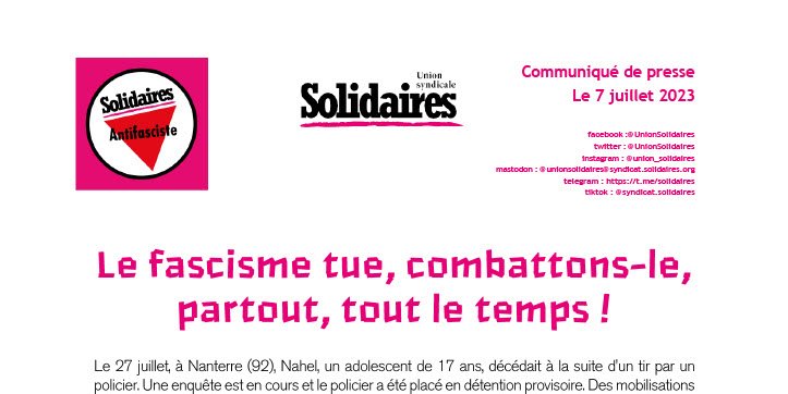 Dans un communiqué de presse, les syndicats majoritaires de policiers, Alliance Police nationale et l’UNSA Police, usent d’un vocabulaire raciste, martial et sécessionniste extrêmement préoccupant, appelant à "faire la guerre aux nuisibles" ; un autre syndicat de police s'est félicité du tir mortel (France Police). Cette rhétorique dangereuse, issue des milieux d’extrême droite, doit mettre en alerte les Ministres de l’Intérieur et de la Justice que nous appelons à la responsabilité face aux dérives réactionnaires et militaristes notamment dans les rangs de la police nationale.