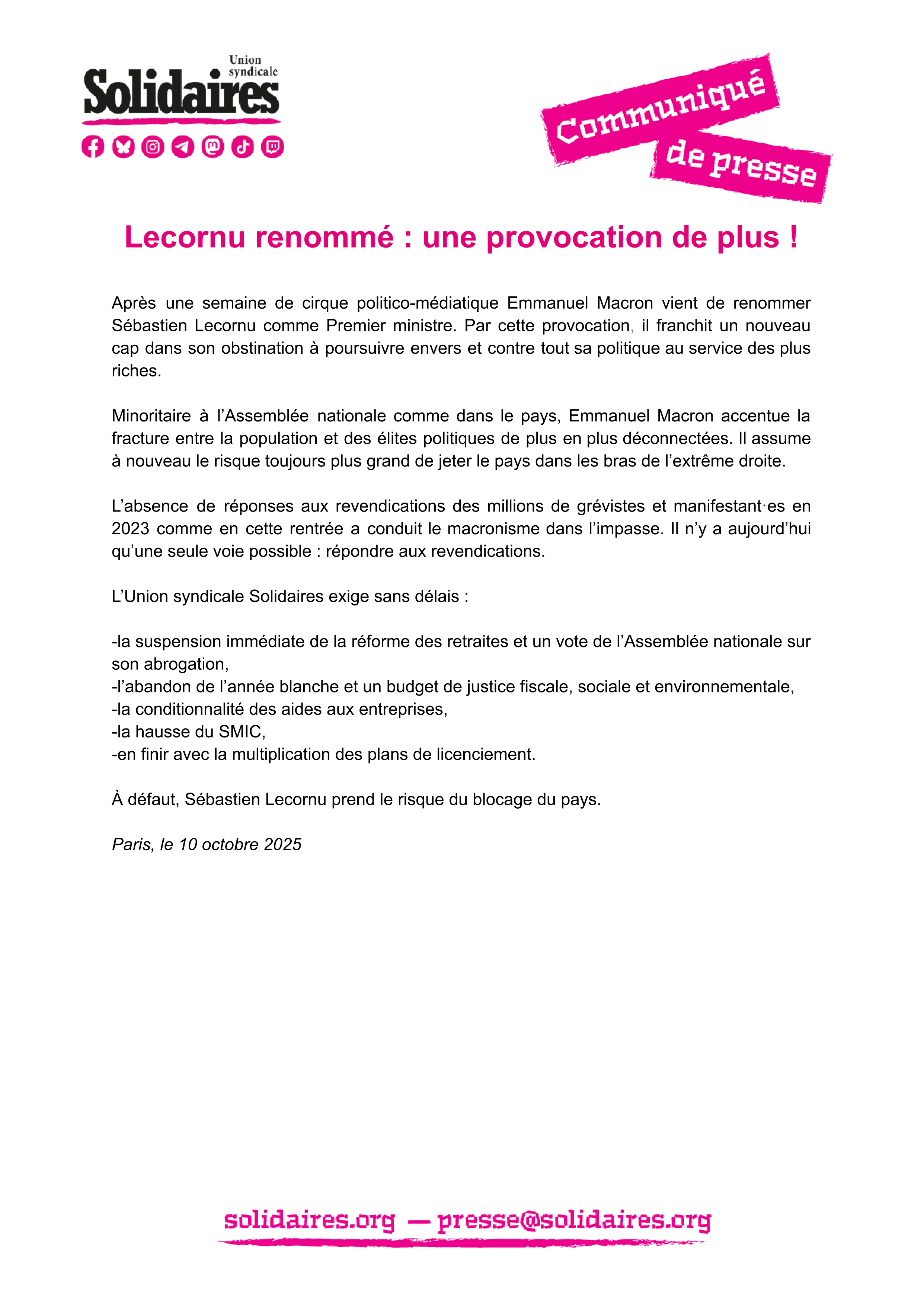 Paris, le 10 octobre 2025