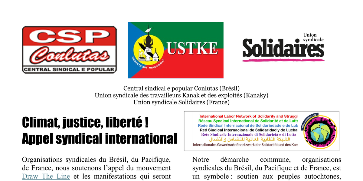 Organisations syndicales du Brésil, du Pacifique, de France, nous soutenons l’appel du mouvement Draw The Line et les manifestations qui seront organisées fin septembre partout dans le monde. Climat, justice, liberté : cela concerne pleinement le syndicalisme !