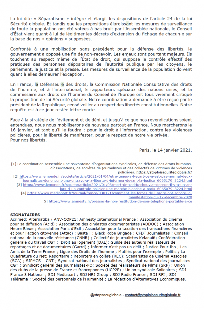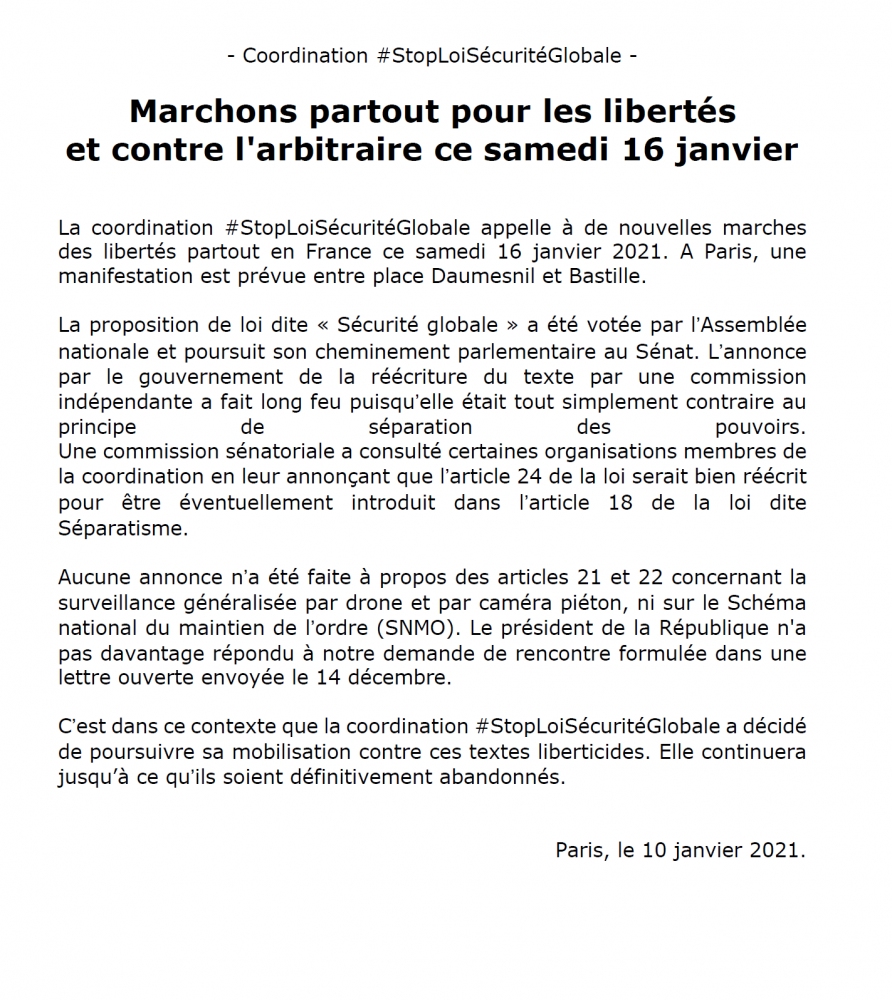 Communiqués du collectif #StopLoiSecuriteGlobale