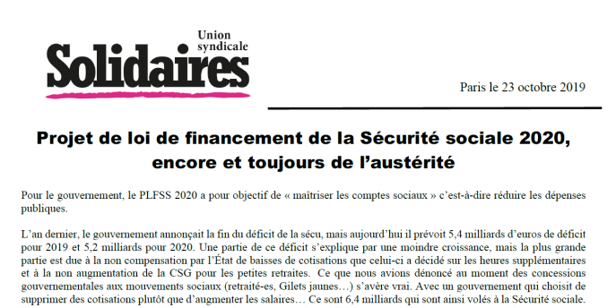 L’an dernier, le gouvernement annonçait la fin du déficit de la sécu, mais aujourd’hui il prévoit 5,4 milliards d’euros de déficit pour 2019 et 5,2 milliards pour 2020. Une partie de ce déficit s’explique par une moindre croissance, mais la plus grande partie est due à la non compensation par l’État de baisses de cotisations que celui-ci a décidé sur les heures supplémentaires et à la non augmentation de la CSG pour les petites retraites. Ce que nous avions dénoncé au moment des concessions gouvernementales aux mouvements sociaux (retraité-es, Gilets jaunes…) s’avère vrai. Avec un gouvernement qui choisit de supprimer des cotisations plutôt que d’augmenter les salaires… Ce sont 6,4 milliards qui sont ainsi volés à la Sécurité sociale.
