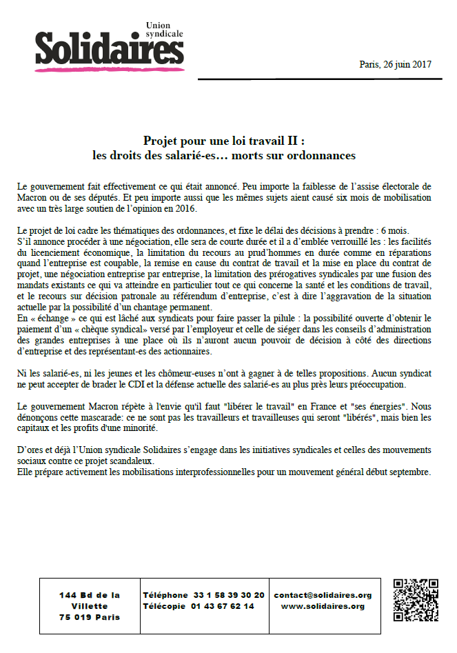 Projet pour une loi travail II : les droits des salarié-es… morts sur ordonnances