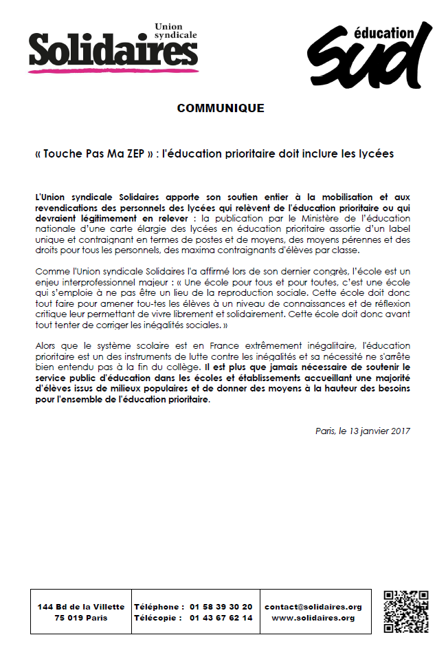 « Touche Pas Ma ZEP » : l'éducation prioritaire doit inclure les lycées