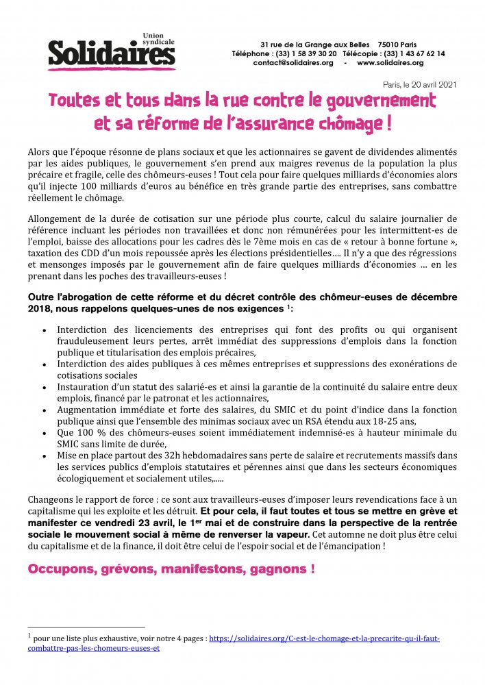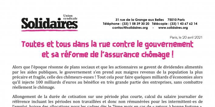 Et pour cela, il faut toutes et tous se mettre en grève et manifester ce vendredi 23 avril, le 1er mai et de construire dans la perspective de la rentrée sociale le mouvement social à même de renverser la vapeur.