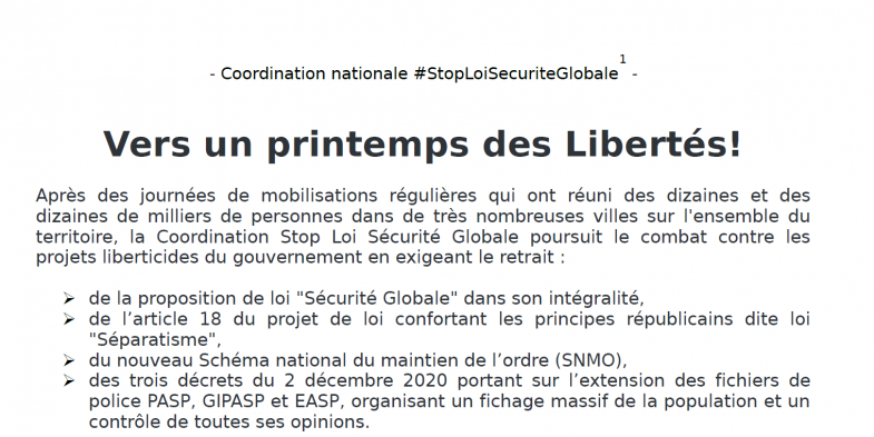 En complément, émission « Face au Beauveau », jeudi 18 février, à 20 h 30 - l'émission de la Coordination nationale #StoploiSécuritéGlobale.