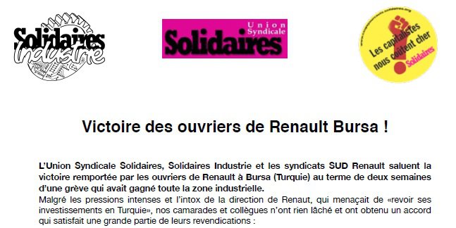 Victoire des ouvriers de Renault Bursa !
