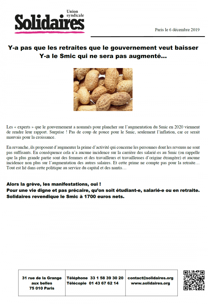 Y-a pas que les retraites que le gouvernement veut baisser - Y-a le Smic qui ne sera pas augmenté…