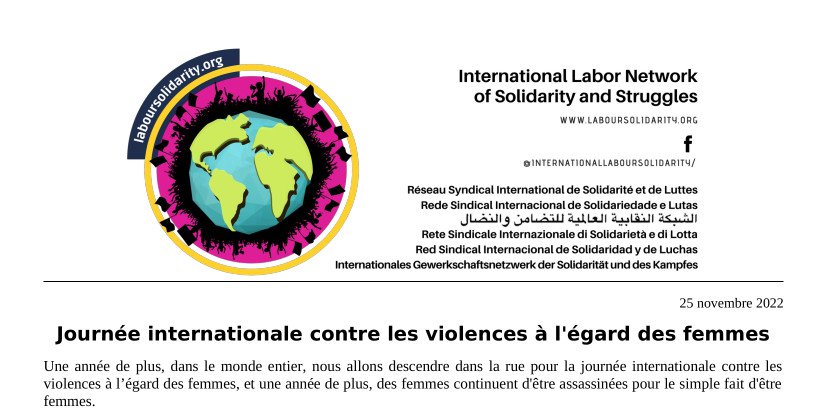 LE COMMUNIQUÉ : https://laboursolidarity.org/fr/n/2420/journee-internationale-contre-les-violences-a-l039egard-des-femmes
