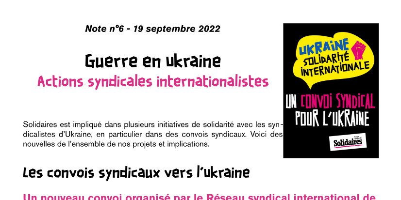 Solidaires est impliqué dans plusieurs initiatives de solidarité avec les syndicalistes d’Ukraine, en particulier dans des convois syndicaux. Voici des nouvelles de l’ensemble de nos projets et implications.