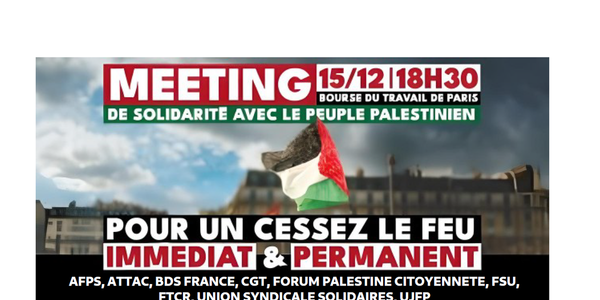 (Paris) Meeting de Solidarité avec le peuple palestinien le 15 décembre
