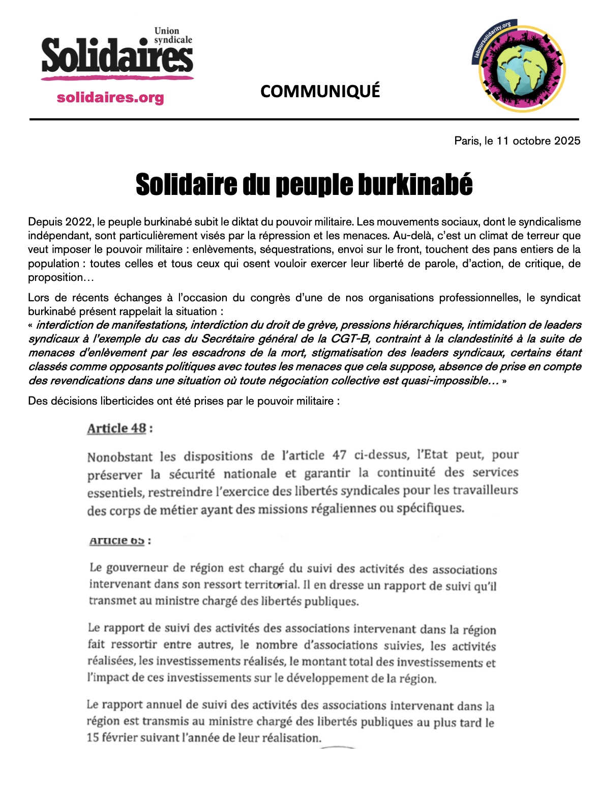 Solidaire du peuple burkinabé