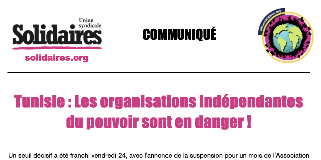 Pour toutes ces raisons en Tunisie, de multiples organisations associatives et syndicales exigent l'arrêt de ces mesures répressives.