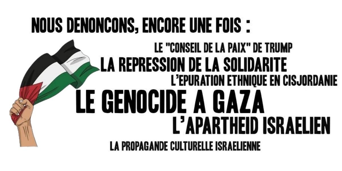 Dénonçons le « Conseil de la Paix», projet néocolonialiste voulu par Donald Trump, qui vise à se substituer à l’ONU, rendant obsolète le droit international et le droit à l’autodétermination du peuple palestinien.