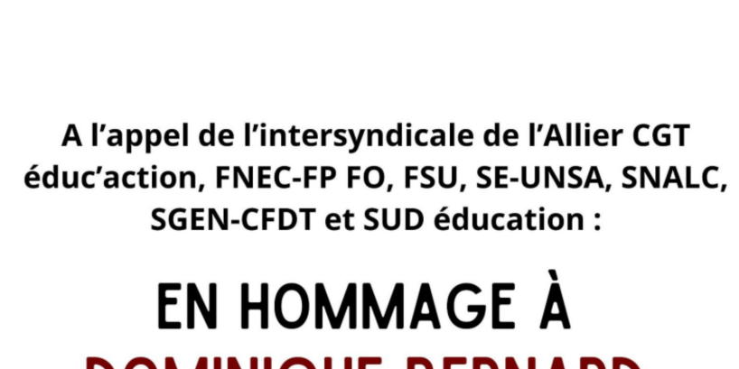 Suite à l'attaque meurtrière dans un établissement scolaire à Arras, rassemblement le 16 octobre à 18h à Moulins, Vichy et Montluçon à l'appel de l'intersyndicale de l'Allier.