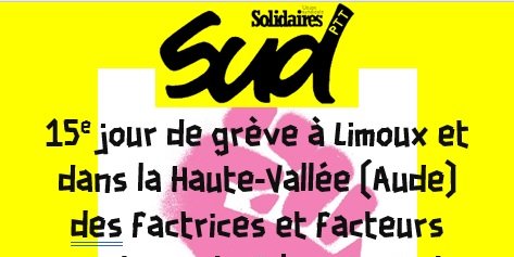 Après 14 jours de grève, les factrices et facteurs du Limouxin et de la Haute-Vallée revendiquent toujours, le retrait du projet de réorganisation qui vise à supprimer la notion de facteur titulaire de tournée.