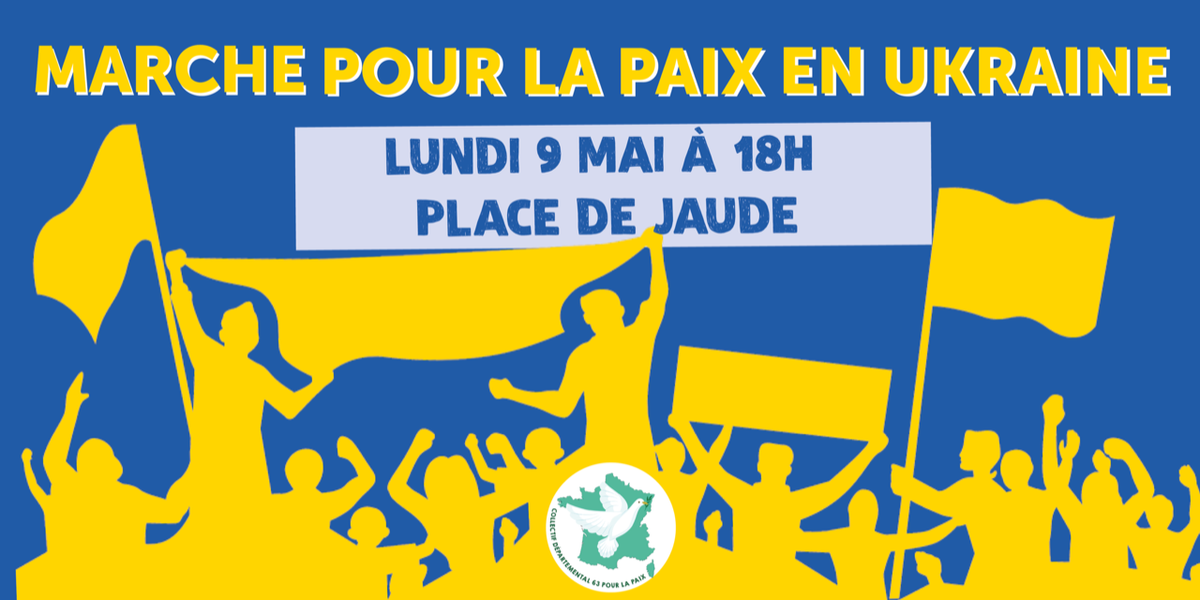 Le collectif départemental du Puy de Dôme pour la paix renouvelle son appel à une mobilisation la plus large pour la paix, par la voie du dialogue et pour une solution politique négociée. Plus que jamais l’action est nécessaire pour réaffirmer la condamnation de l’agression militaire du pouvoir russe contre l’Ukraine en violation du droit international.
