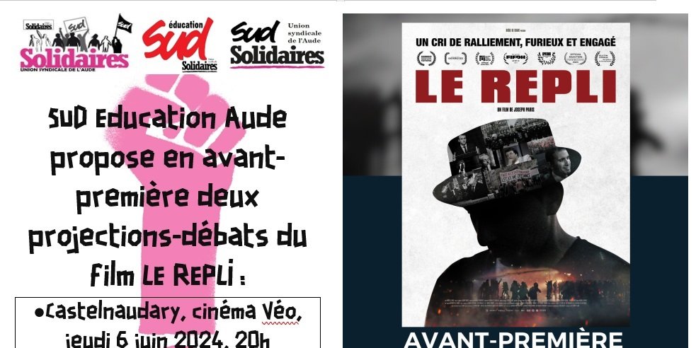 Le syndicat SUD Education 11 propose en avant-première la projection du film LE REPLI sélectionné dans de nombreux festivals internationaux.
