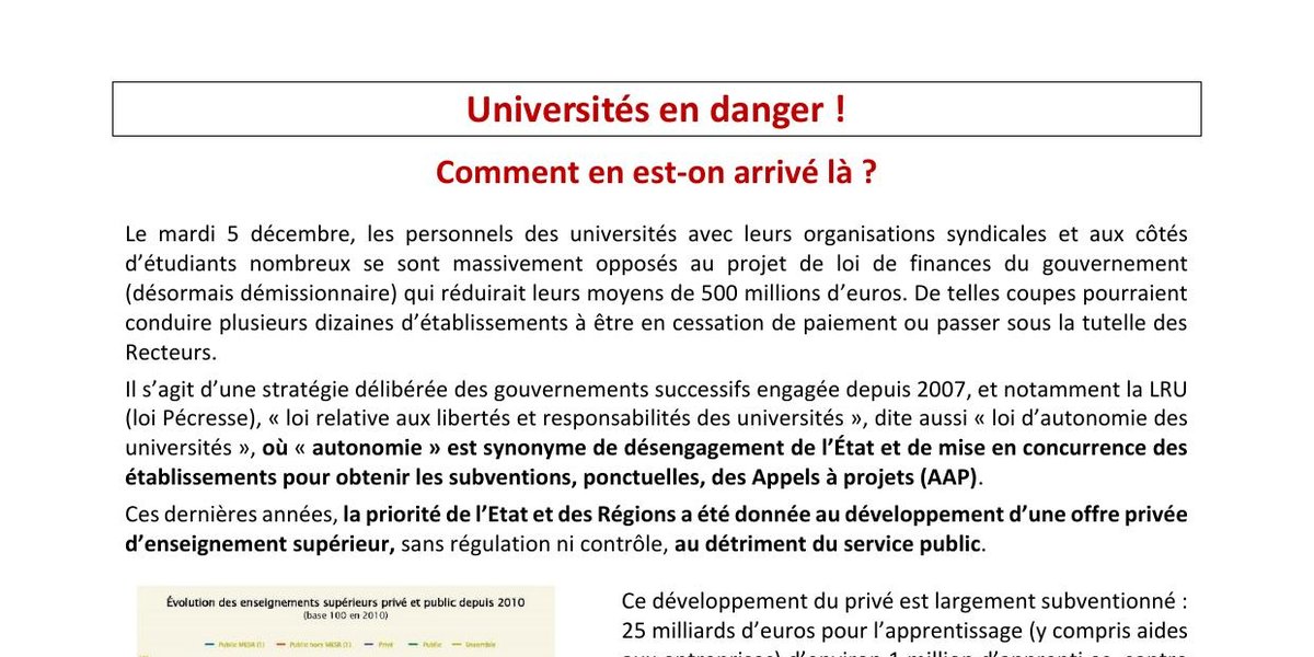 Suite à une première AG qui a rassemblé 800 personnels et étudiant-e-s mardi 3 décembre, l'intersyndicale poursuit le travail d'information et de construction de la mobilisation.