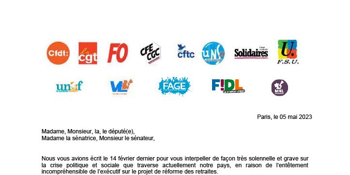 Nous vous avions écrit le 14 février dernier pour vous interpeller de façon très solennelle et grave sur la crise politique et sociale que traverse actuellement notre pays, en raison de l’entêtement incompréhensible de l’exécutif sur le projet de réforme des retraites.