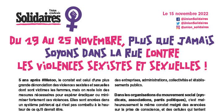 Depuis plusieurs années, Solidaires, avec d’autres organisations syndicales et féministes réclament :