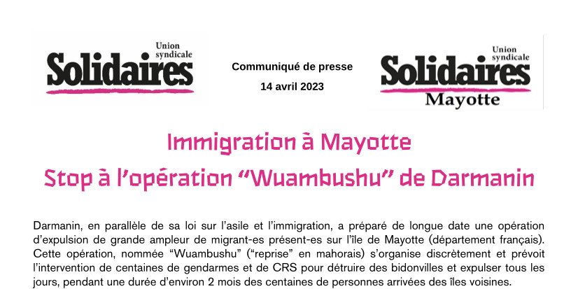 - Pour l’Union syndicale Solidaires et Solidaires Mayotte, cette opération scandaleuse doit être définitivement arrêtée.