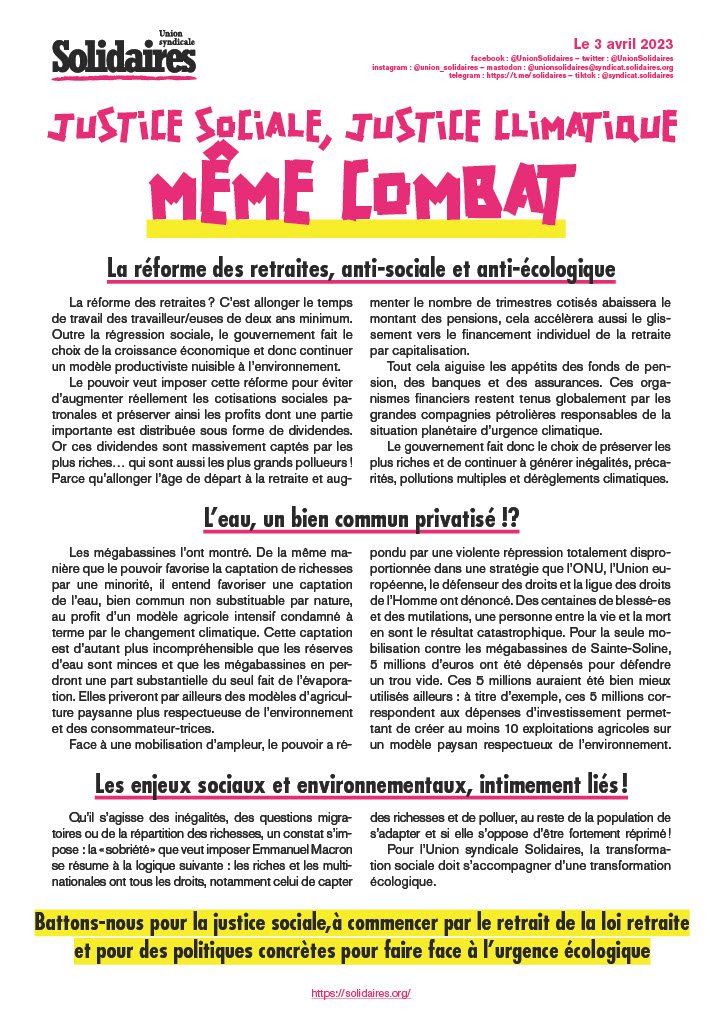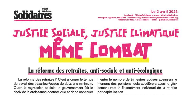 Pour l’Union syndicale Solidaires, la transformation sociale doit s’accompagner d’une transformation écologique.