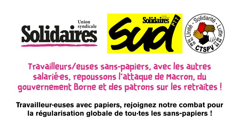 Ensemble nous sommes attaqué·es. Ensemble repoussons ces attaques. Celle sur les retraites, mais aussi celle sur le droit au séjour qui est un moyen d'attaquer tous les droits, les nôtres mais aussi ceux de tous les travailleurs/euses.