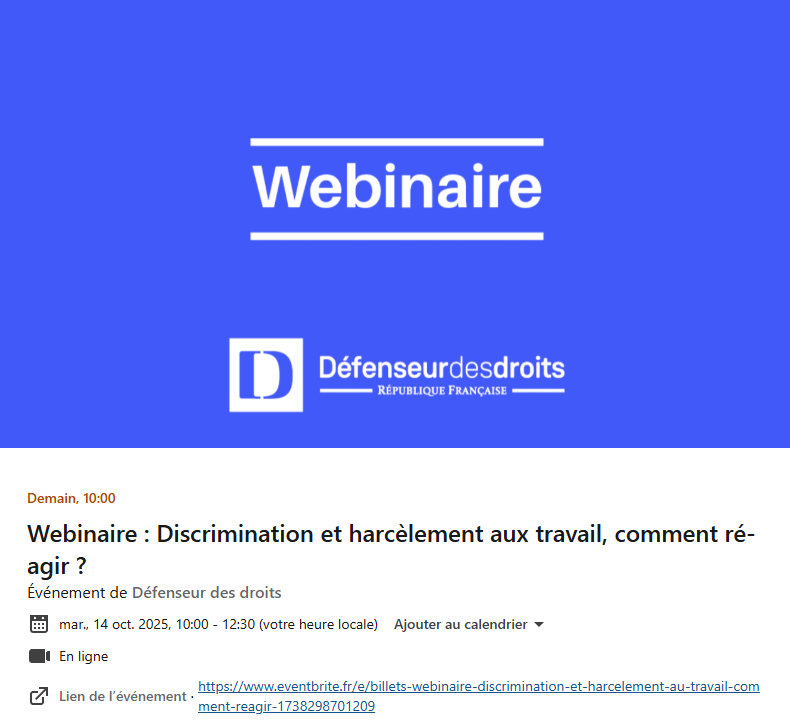 Événement de la Défenseur des droits mardi 14 oct. 2025, 10:00 - 12:30
