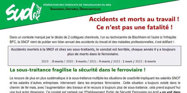 Accidents mortels à la SNCF et chez ses sous-traitants, le constat est terrible, chaque année il y a toujours plus de morts dans le ferroviaire.