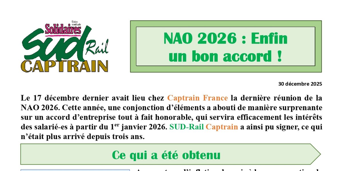 Le 17 décembre dernier avait lieu chez Captrain France (filiale du Groupe SNCF) la dernière réunion de la NAO 2026.