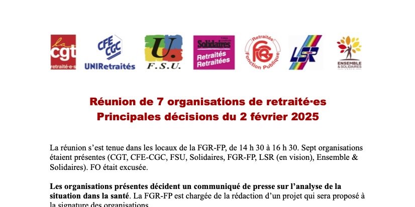 Et le compte-rendu complet de cette réunion, qui n'engage que l'UNIRS Solidaires