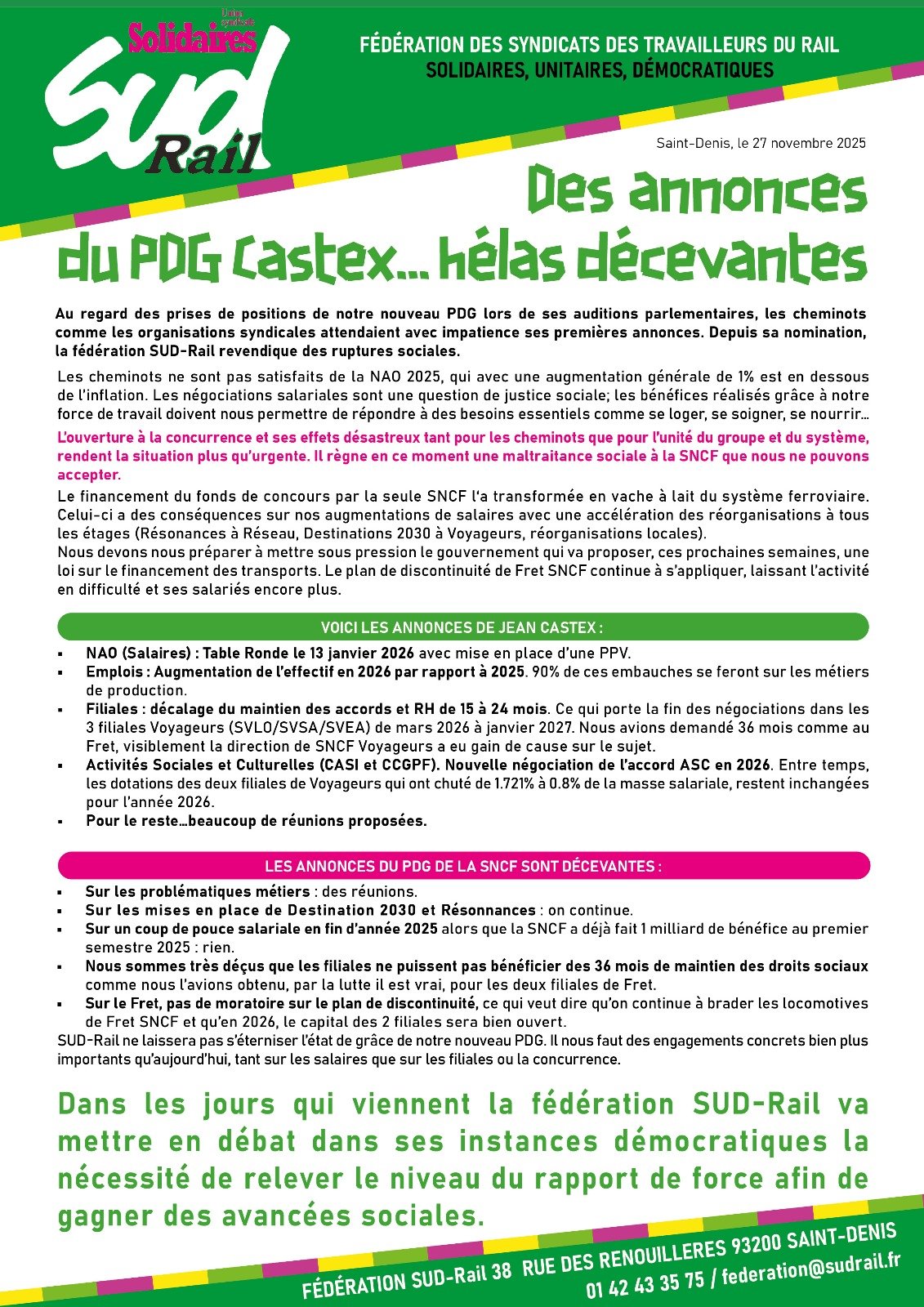 Publié le 27 novembre 2025 par SUD Rail