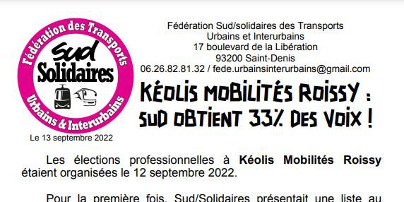 Les élections professionnelles à Kéolis Mobilités Roissy étaient organisées le 12 septembre 2022.