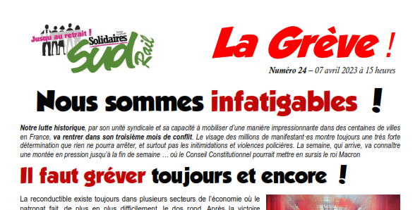 Notre lutte historique, par son unité syndicale et sa capacité à mobiliser d’une manière impressionnante dans des centaines de villes en France, va rentrer dans son troisième mois de conflit. Le visage des millions de manifestant·es montre toujours une très forte détermination que rien ne pourra arrêter, et surtout pas les initimidations et violences policières. La semaine, qui arrive, va connaître une montée en pression jusqu’à la fin de semaine … où le Conseil Constitutionnel pourrait mettre en sursis le roi Macron