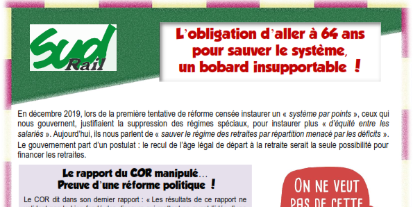 En décembre 2019, lors de la première tentative de réforme censée instaurer un « système par points », ceux qui nous gouvernent, justifiaient la suppression des régimes spéciaux, pour instaurer plus « d’équité entre les salariés ». Aujourd’hui, ils nous parlent de « sauver le régime des retraites par répartition menacé par les déficits ». Le gouvernement part d’un postulat : le recul de l’âge légal de départ à la retraite serait la seule possibilité pour financer les retraites.