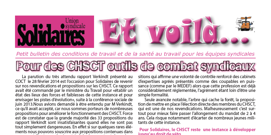 > Page 1 : Pour des CHSCT outils de combats syndicaux