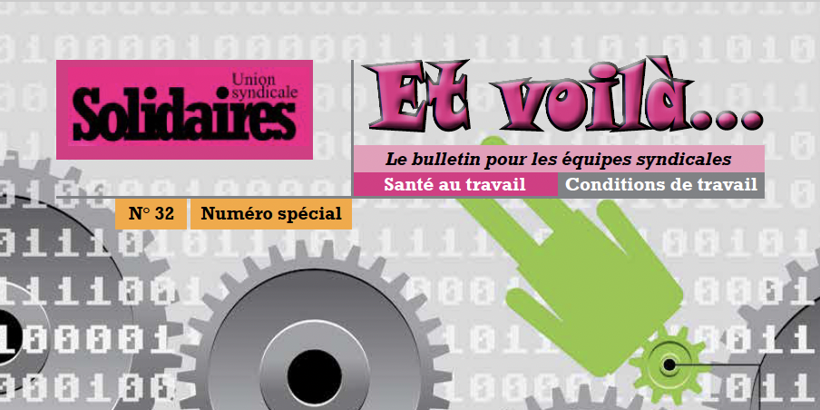 Voici, voilà un numéro spécial du bulletin "et voilà" numéro 32 des conditions de travail et de la santé au travail de la commission de l’Union syndicale Solidaires à destination de l’ensemble des militants et militantes impliqués dans la santé au travail.