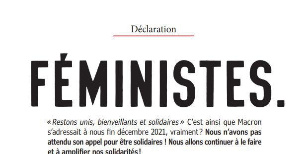 Nous sommes Solidaires avec les femmes et les minorités de genre du monde entier! Alors oui, face à votre politique néolibérale qui casse les systèmes de solidarités et enrichit les classes les plus aisées, nous allons opposer nos solidarités, nos revendications et nos luttes!