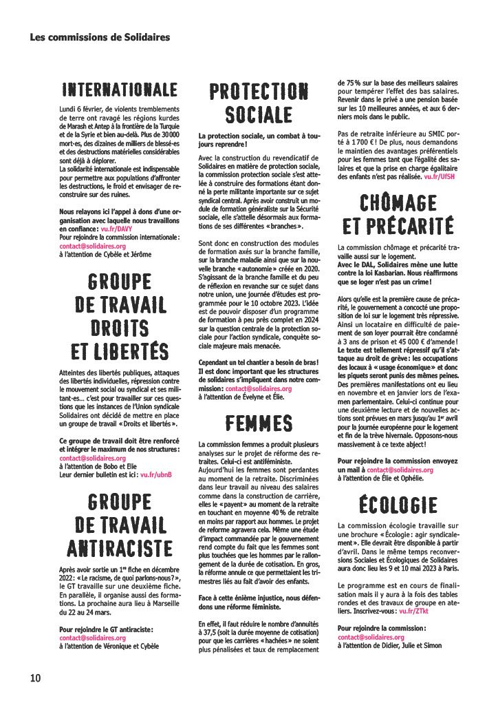 Pour rejoindre la commission envoyez un mail à contact@solidaires.org à l’attention de Elie et Ophélie.