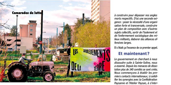 Le gouvernement en cherchant à nous dissoudre suite à Sainte Soline, nous a essemé. Depuis les menaces de dissolution plus de 140 comités se sont créés. Nous commençons à établir les premiers contacts internationaux ; à solidifier les synergies avec la Confédération Paysanne et l'Atelier Paysan, à s'interroger sur les manières de se rapporter à des mouvements sociaux comme celui de la lutte contre la réforme des retraites.