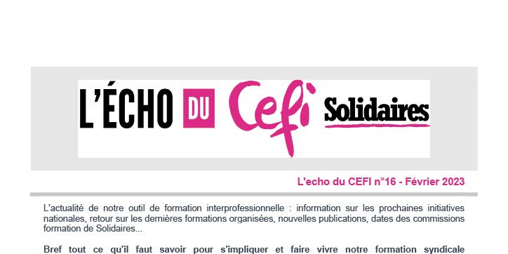 L'actualité de notre outil de formation interprofessionnelle : information sur les prochaines initiatives nationales, retour sur les dernières formations organisées, nouvelles publications, dates des commissions formation de Solidaires...
